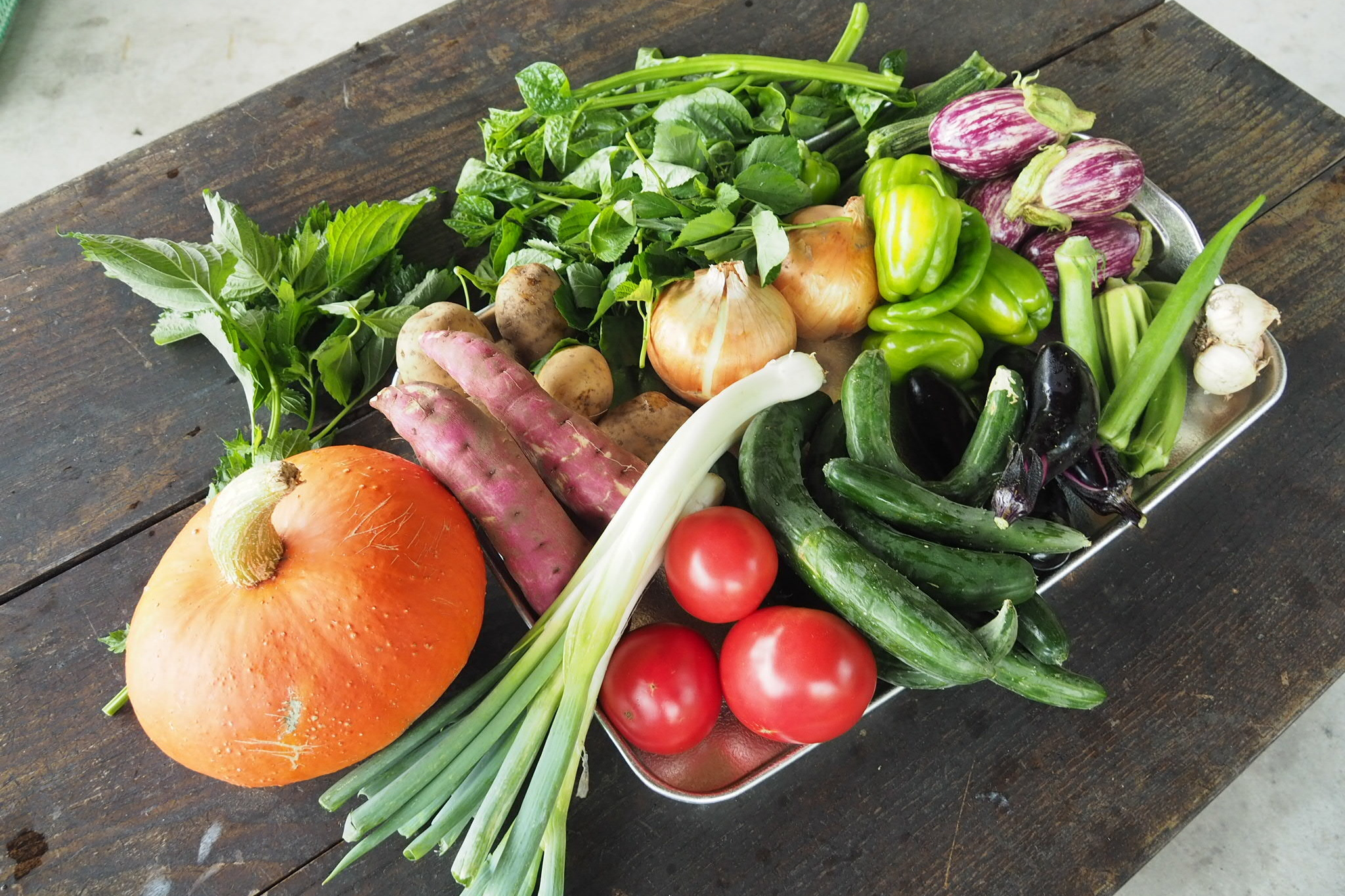 四季彩菜工房の畑で無農薬で育った野菜のセットです。露地で栽培した野菜たちは夏はみずみずしく、冬は甘みがぎゅっと詰まっていて、野菜本来の味を楽しんでいただけます。また山で採れる山菜や筍などもセットに入ることがあります。